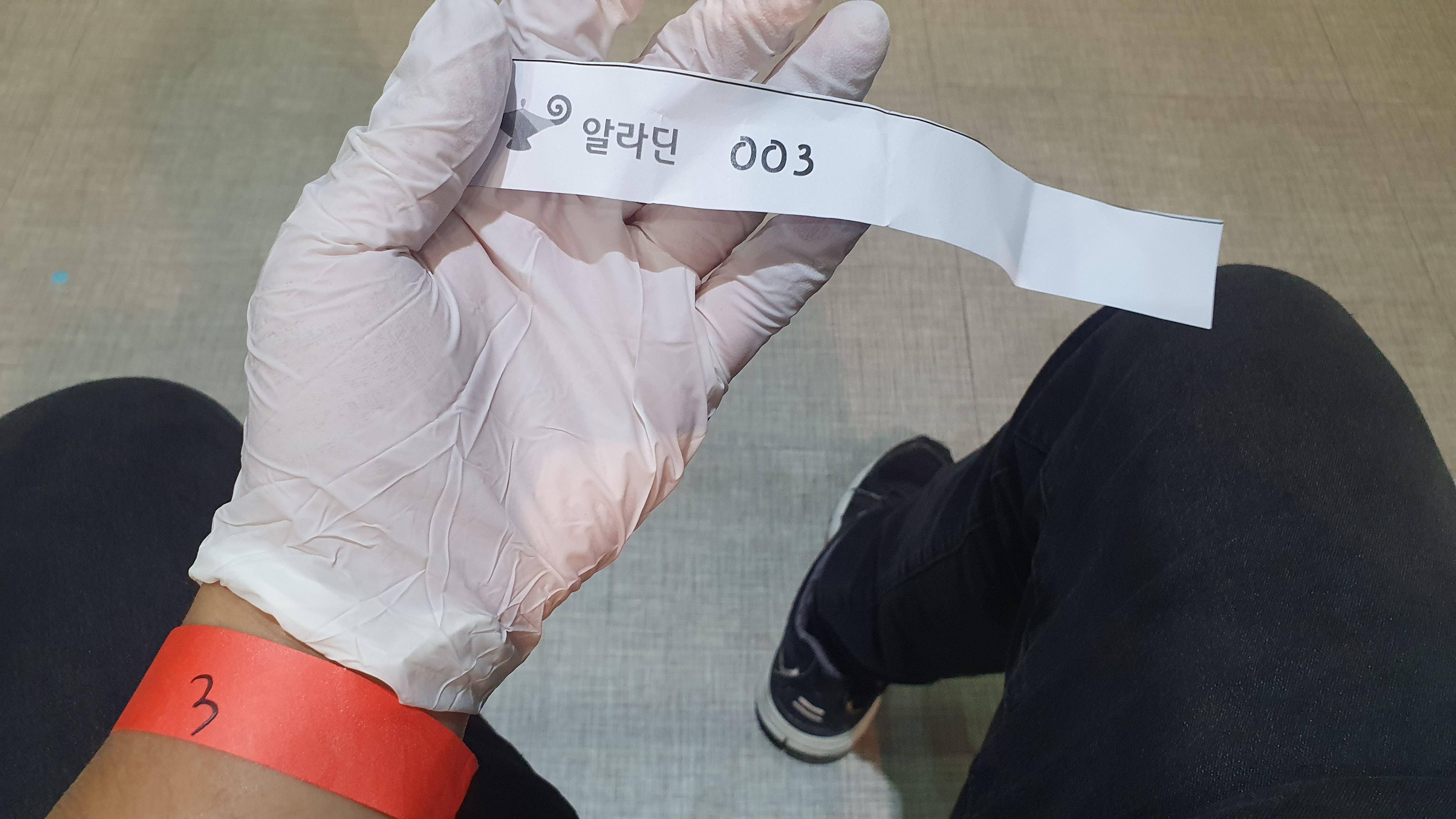 그리고 또 라텍스장갑주던데 저번에는 멤버들 보기 전에 끼라고 하더니 이번에는 입장할 때부터 장갑 끼라고 함. 아 참나 손에 땀 차게...