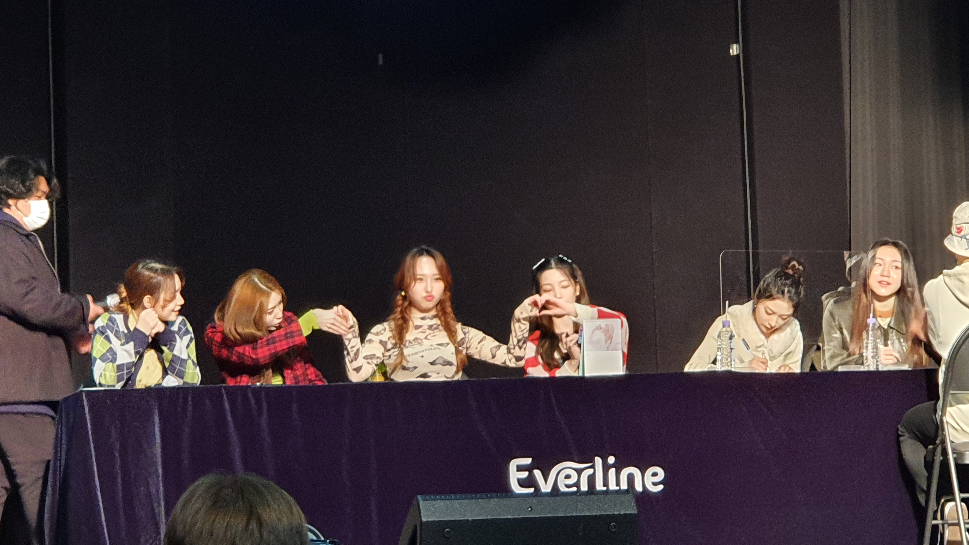 어찌 됐든 차례를 기다리며 대기함. 대기하는 중에 소희랑 손인사 먼저 하고 쥬리가 쳐다보길래 눈 찡그리면서 인사하니까 쥬리도 눈 찡그림.