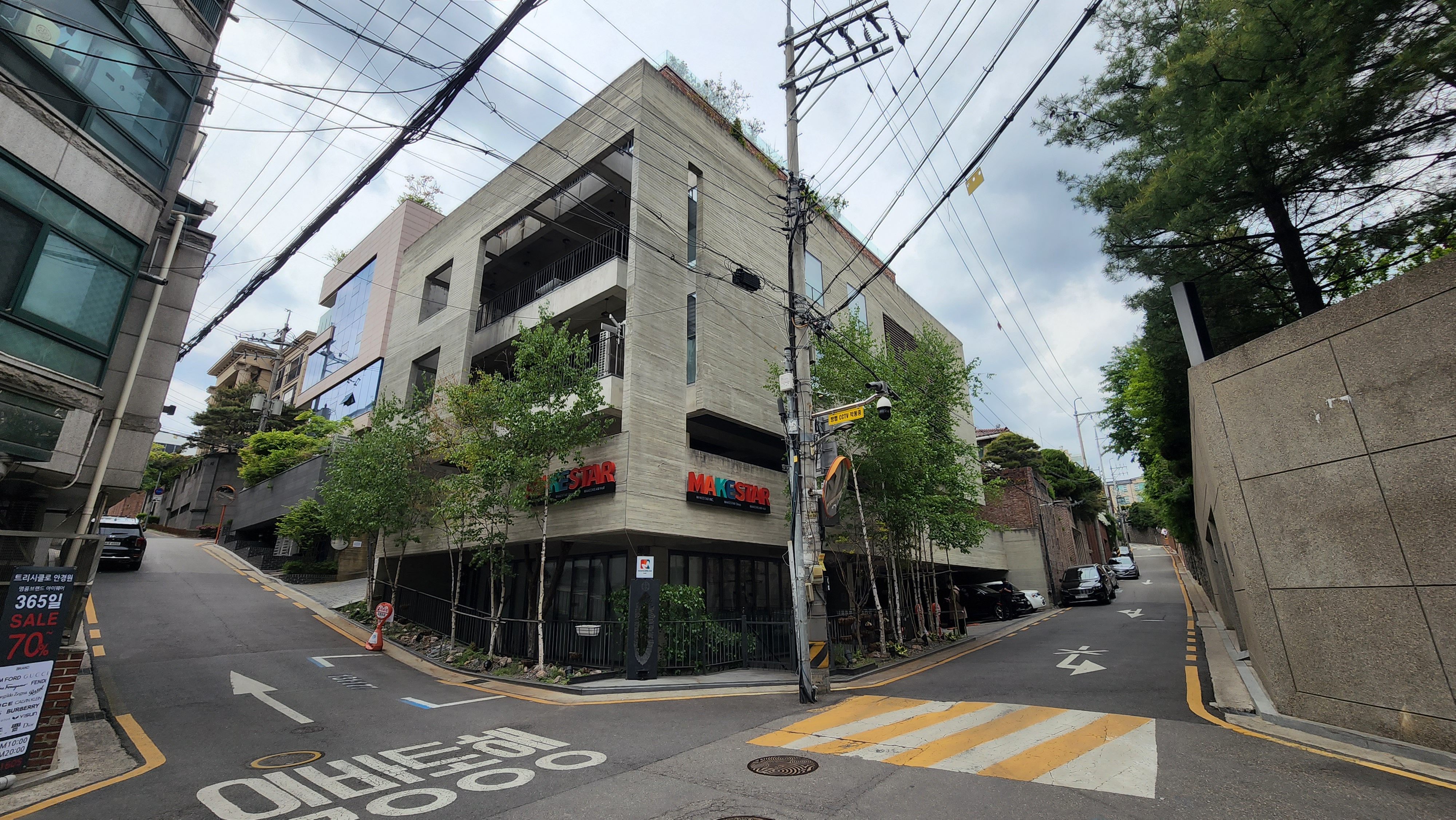 부자 동네답게 넓은 단독주택들이 보이고 거기 중간에 떡 하고 메이크스타 본사가 자리 잡고 있었음.