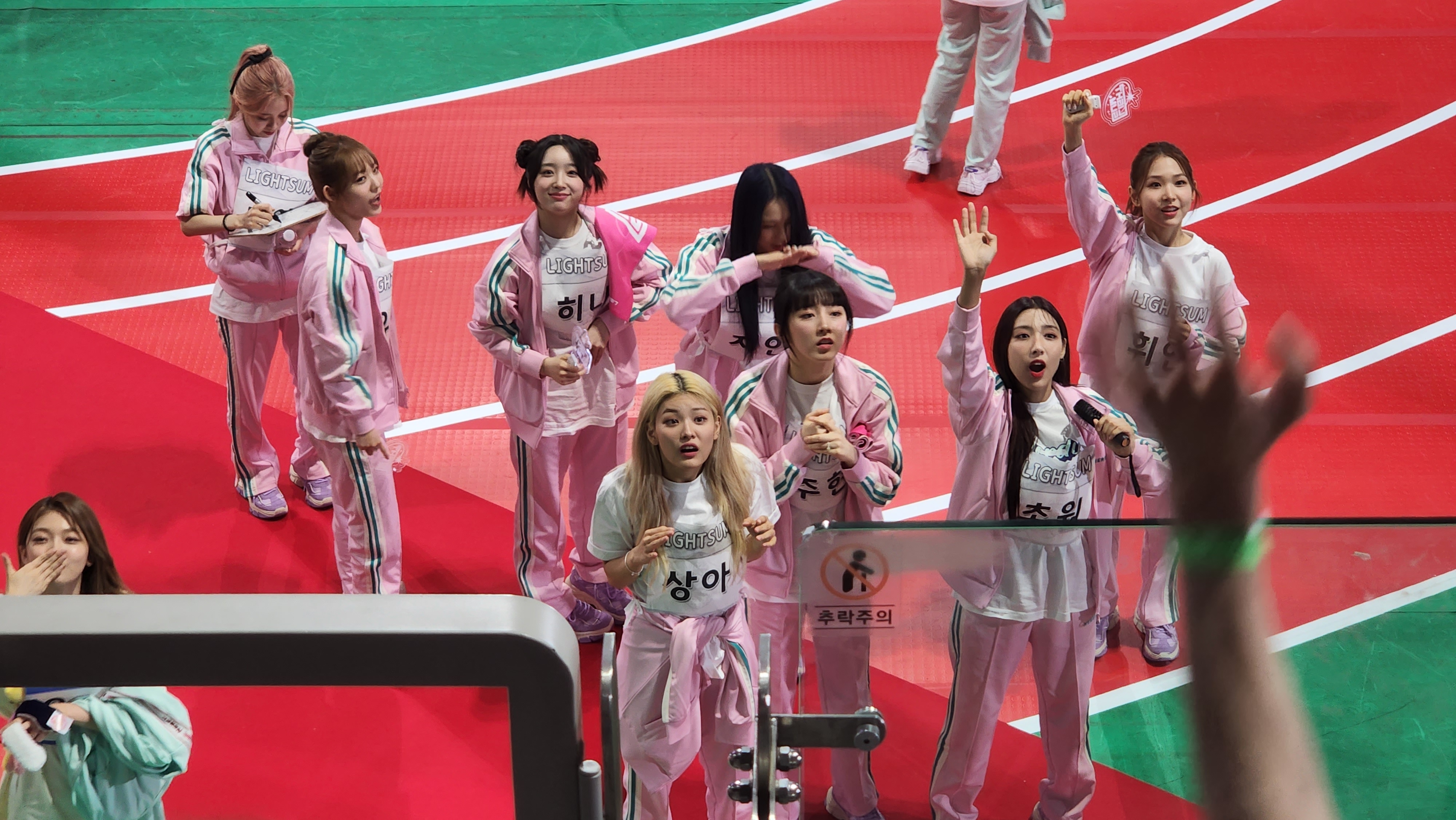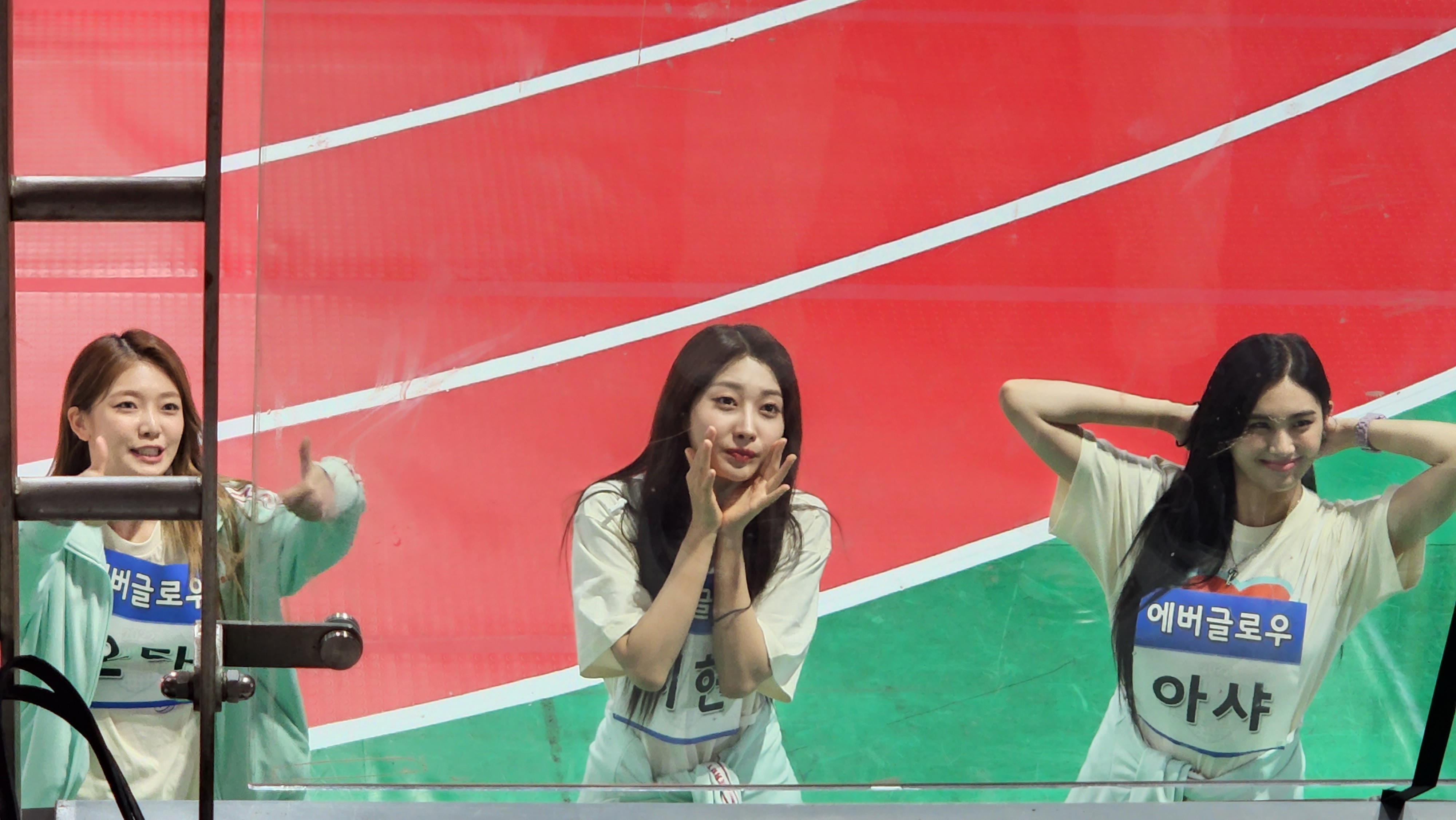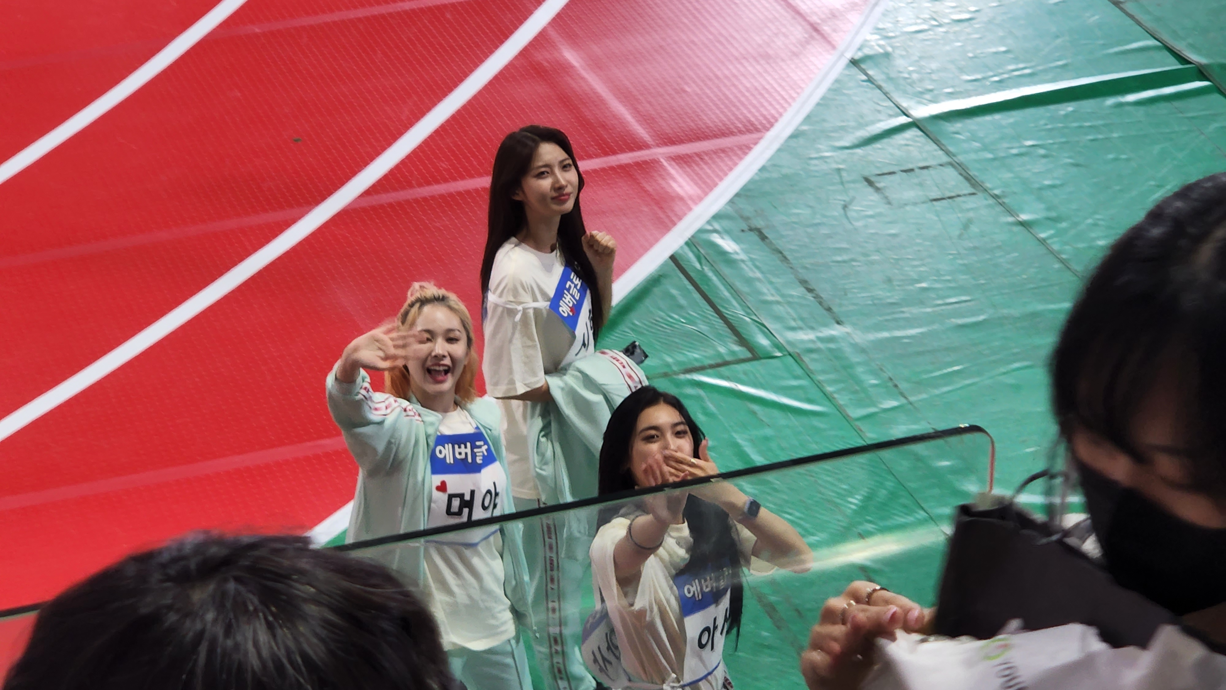 계주 시작하니까 에버글로우팬매가 와서 "포에버분들, 에버글로우 응원 많이 해주세요!" 하고 말함.