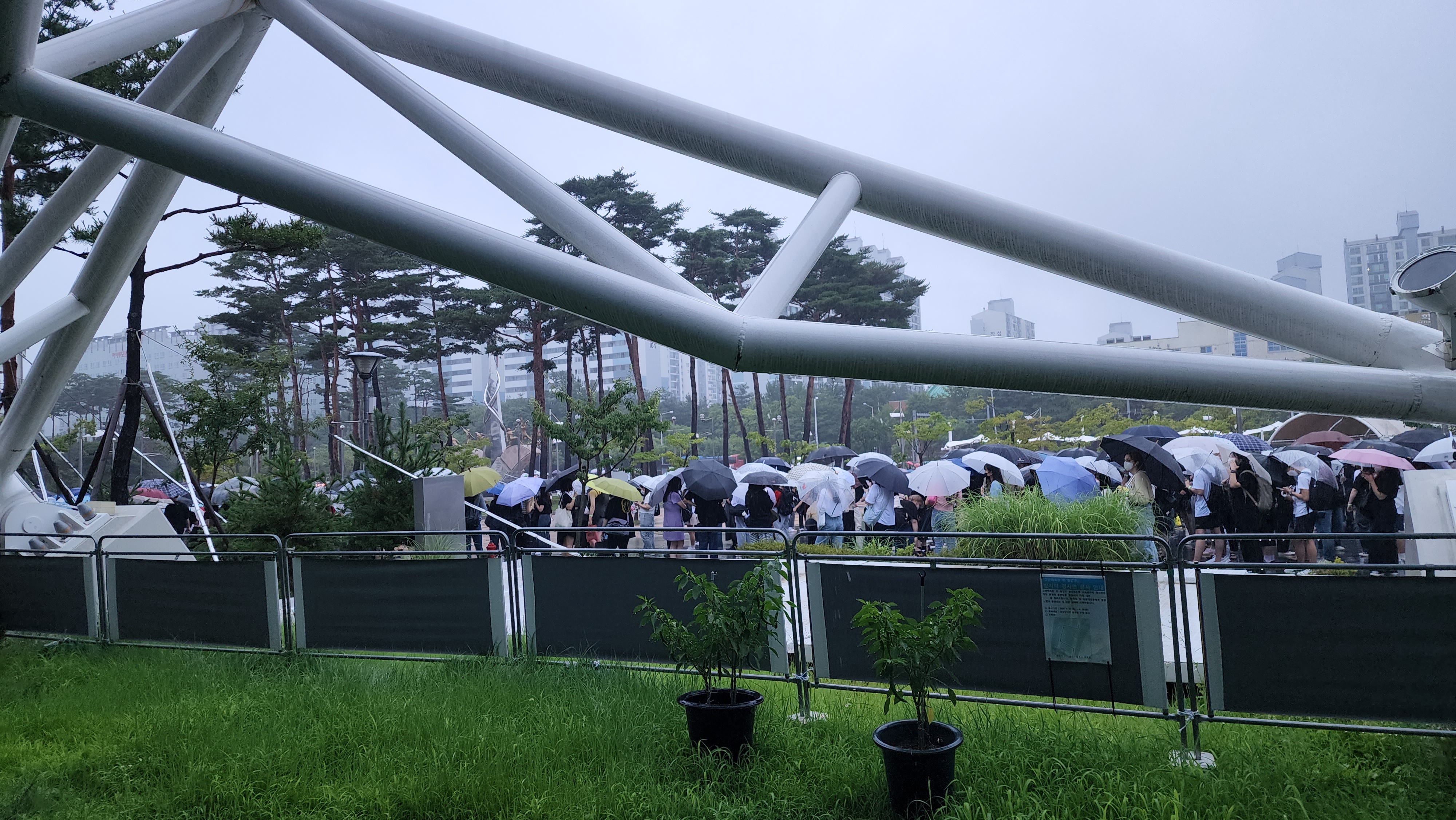 근데 하필 비가 오기 시작해서 비안 맞으려고 최대한 버팀. 근데 비가 그칠 기미가 안 보여서 도장님우산 빌려서 인첵하러 감. 7번이었는데 찾아가기도 귀찮아서 그냥 뒤에서 줄서고 있었는데 점점 비가 많이 오더라.