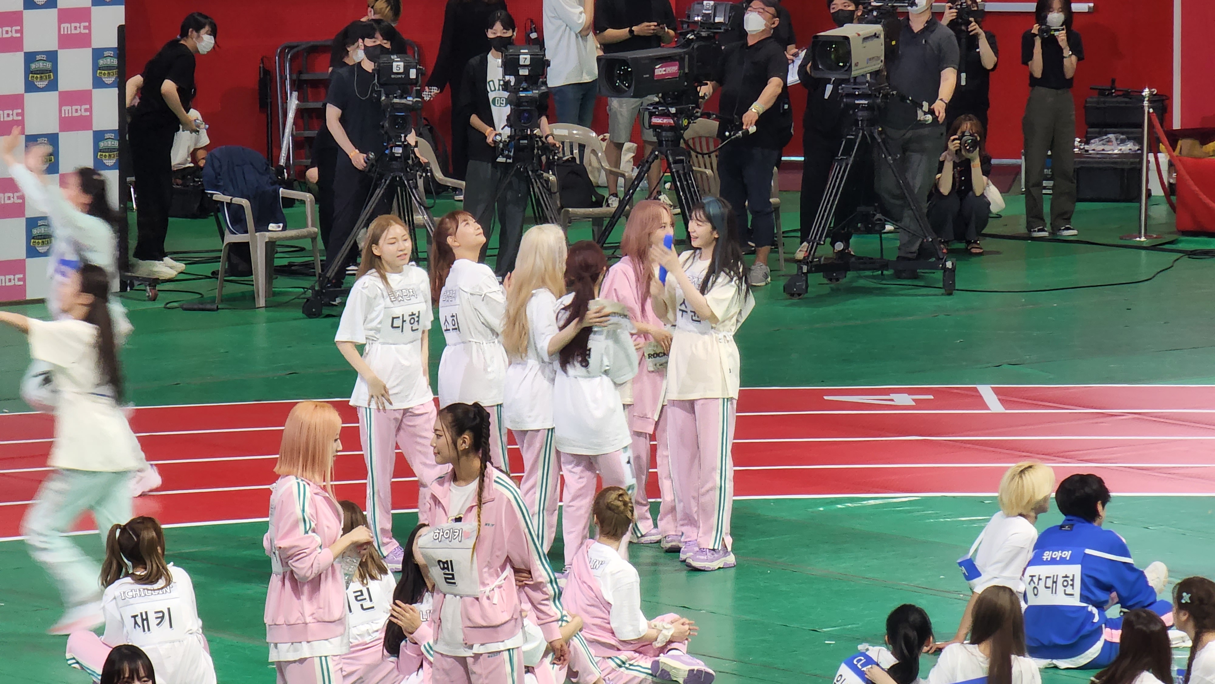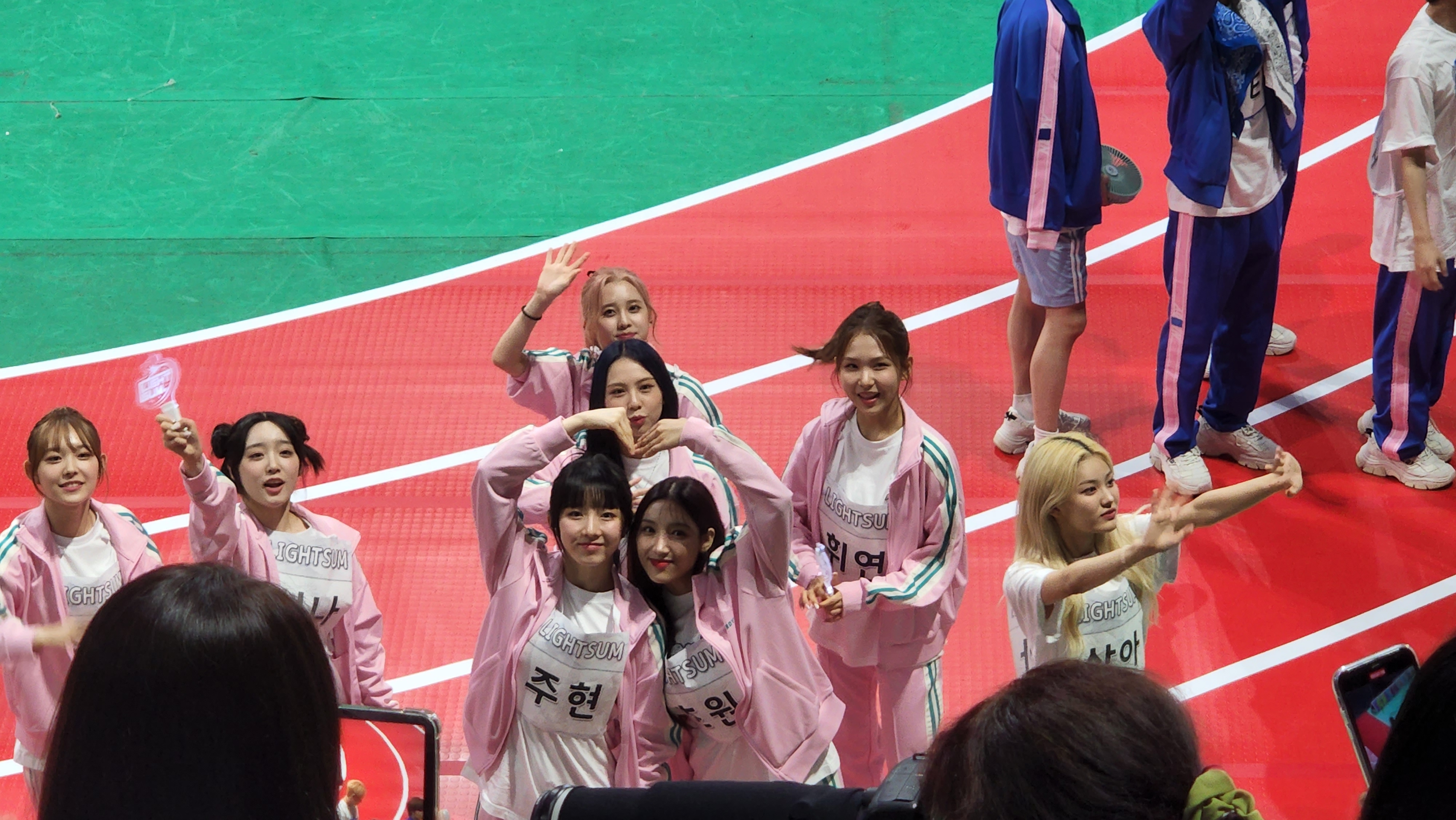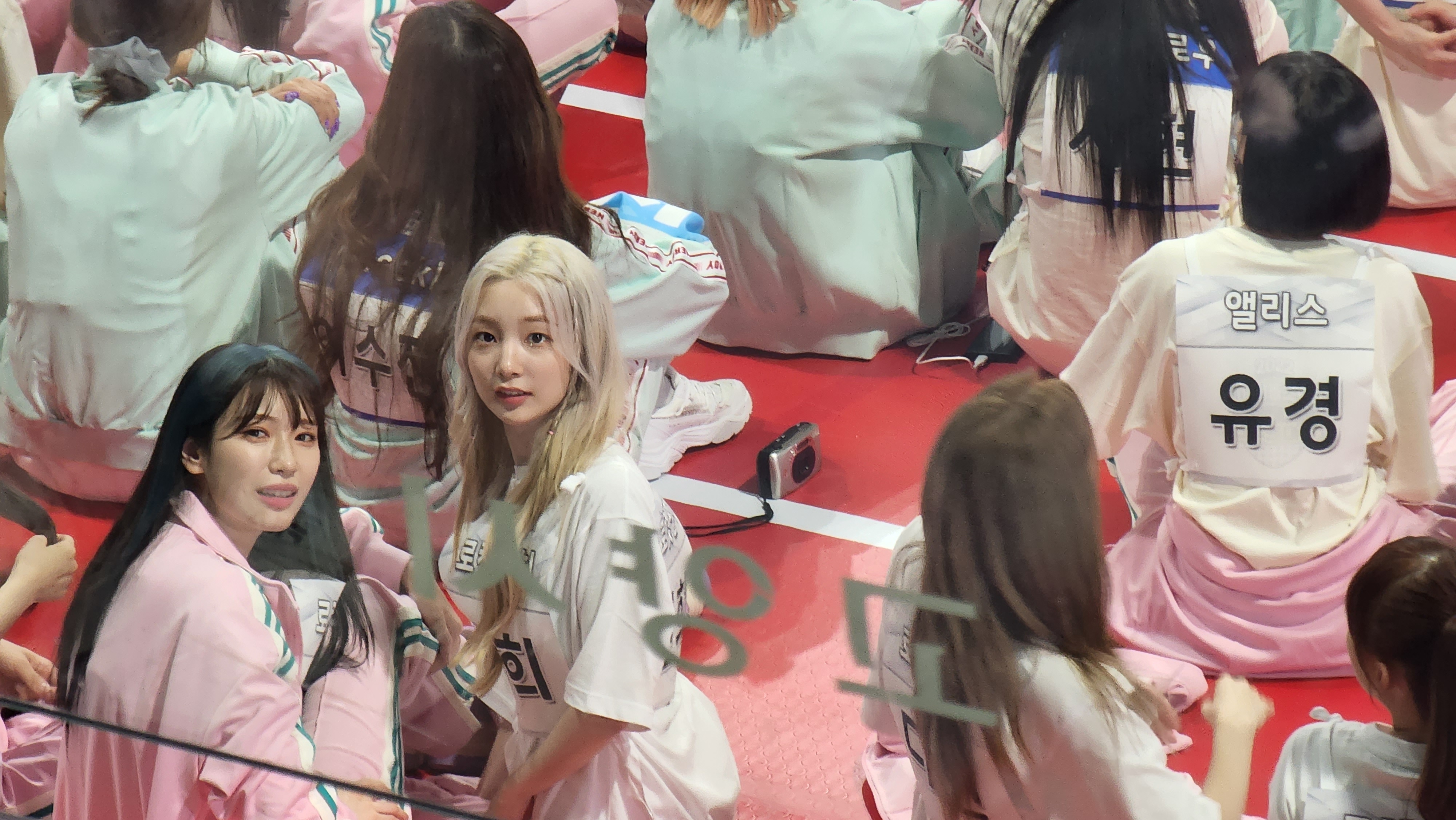 하... 근데 입장하고 팬석에 앉으니까 이미 양궁 시작하고 있었음. 그래도 아이브랑 솔로연합 대결할 때부터 보긴 했지만... 은비랑 유리, 예나 같이 서있길래 사진 찍는데 팬매들이 찍지 말라고 디펜스 계속 들어옴...