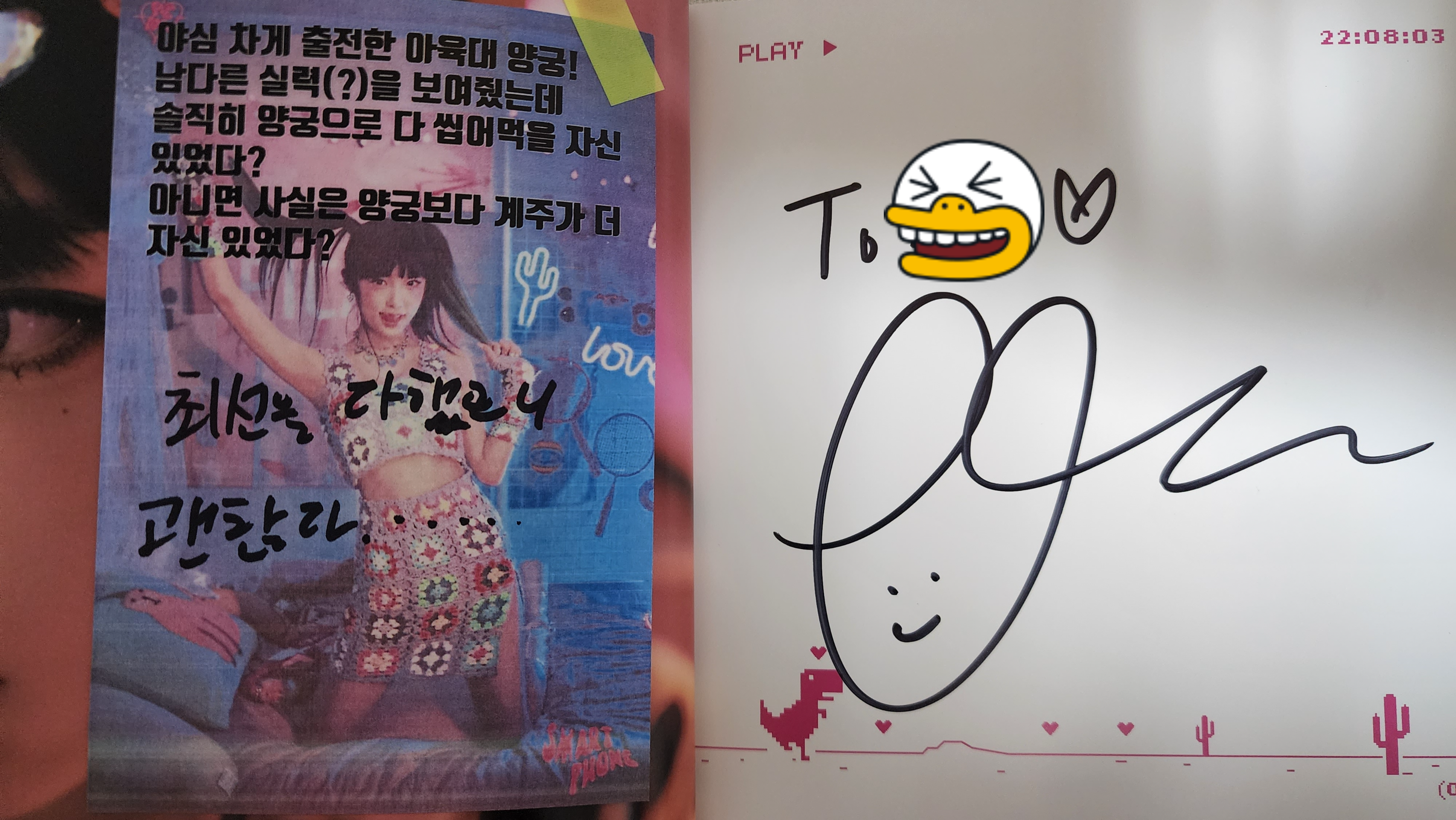 이 각도면 예나가 싸인하는 도중에도 찍히는 각도. 나쁘지 않은데?