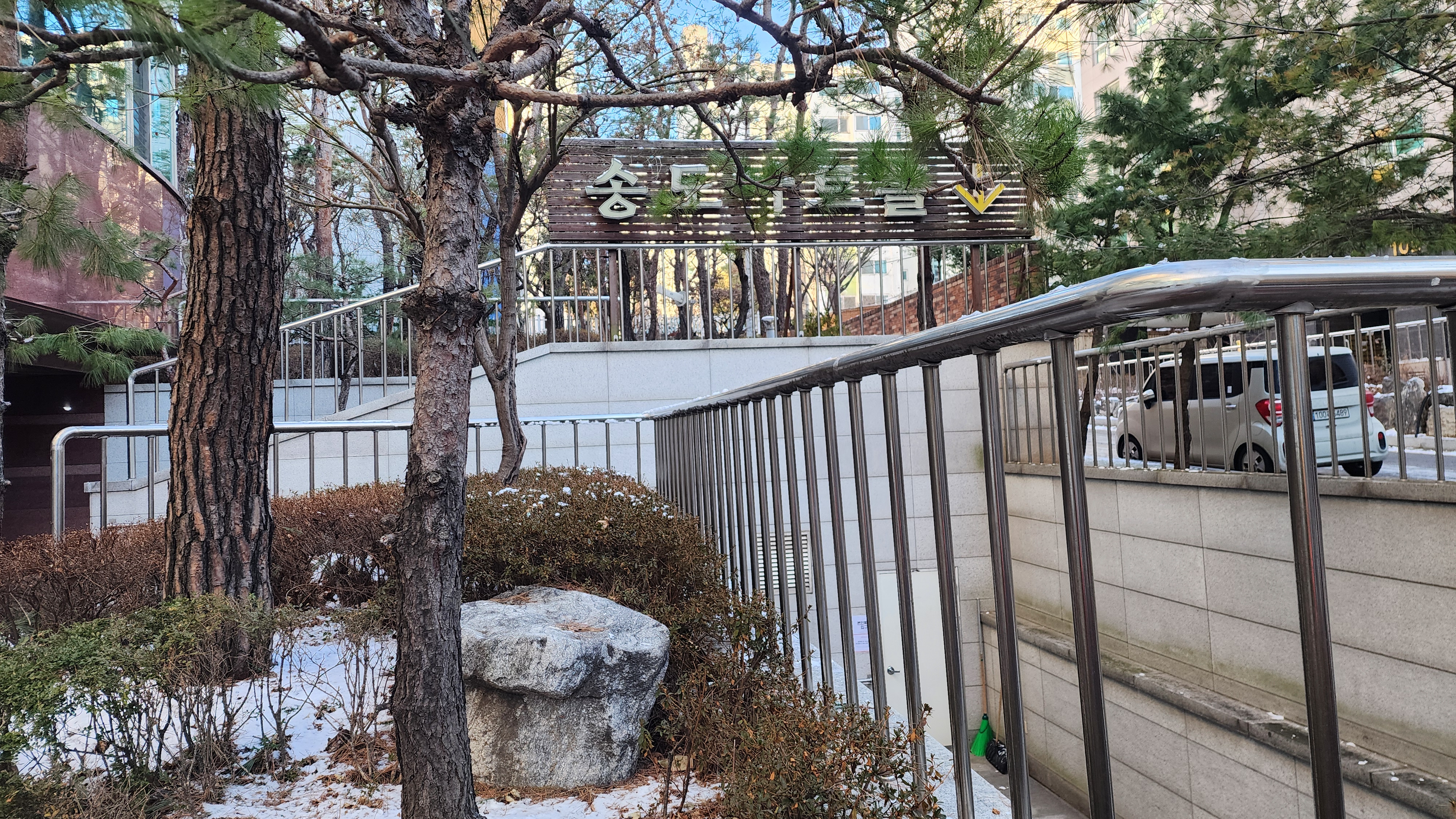 문 열 때 줄 때까지 근처에서 눈 쌓인 거 뽀득뽀득 밟으면서 놀았다.