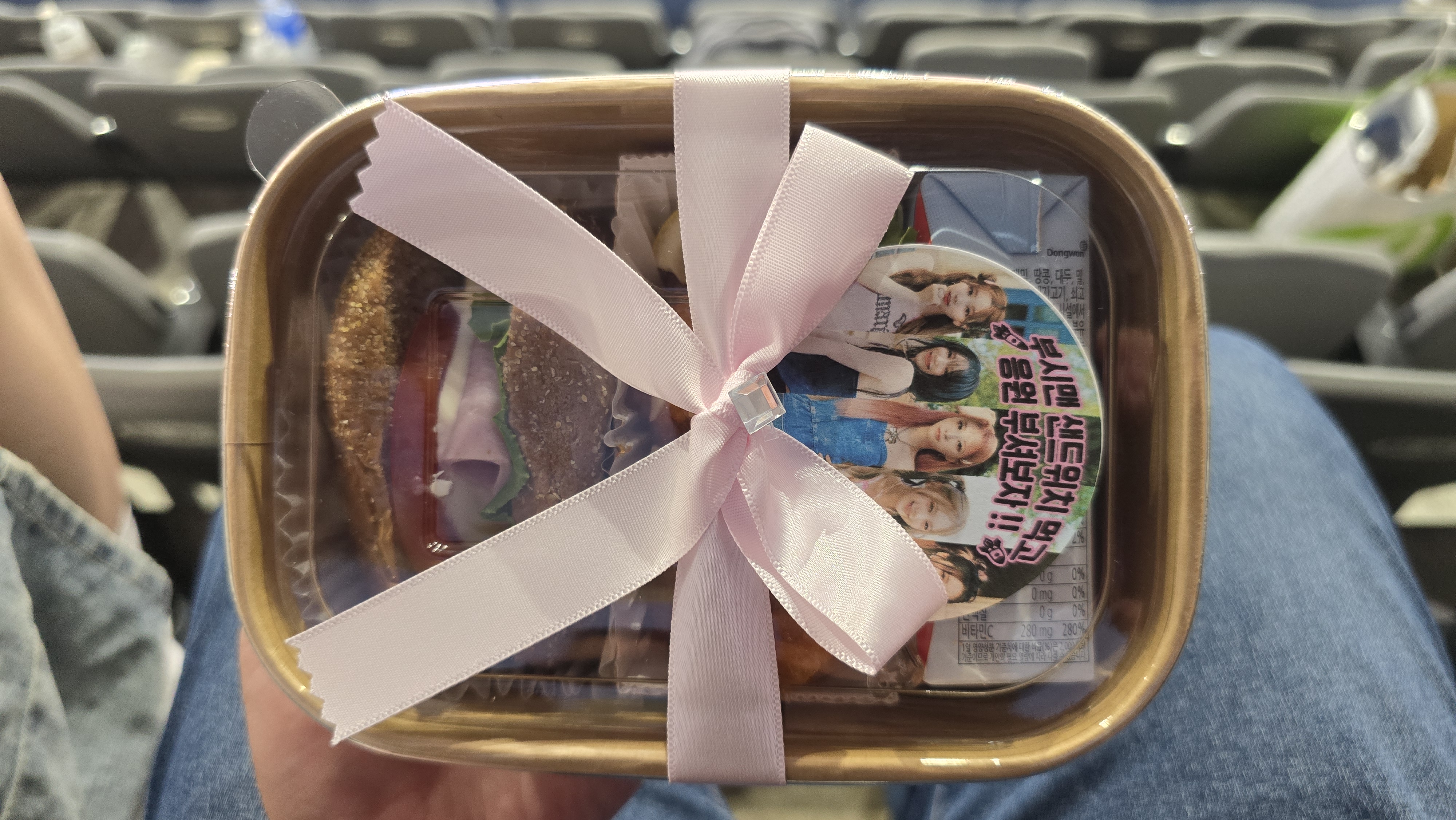 브레이킹댄스 끝나니까 또 저녁시간이 다가왔는데 저녁은 기대 안 했는데 팬매가 자리에 앉으라고 하더니 뭘 또 나눠주더라.